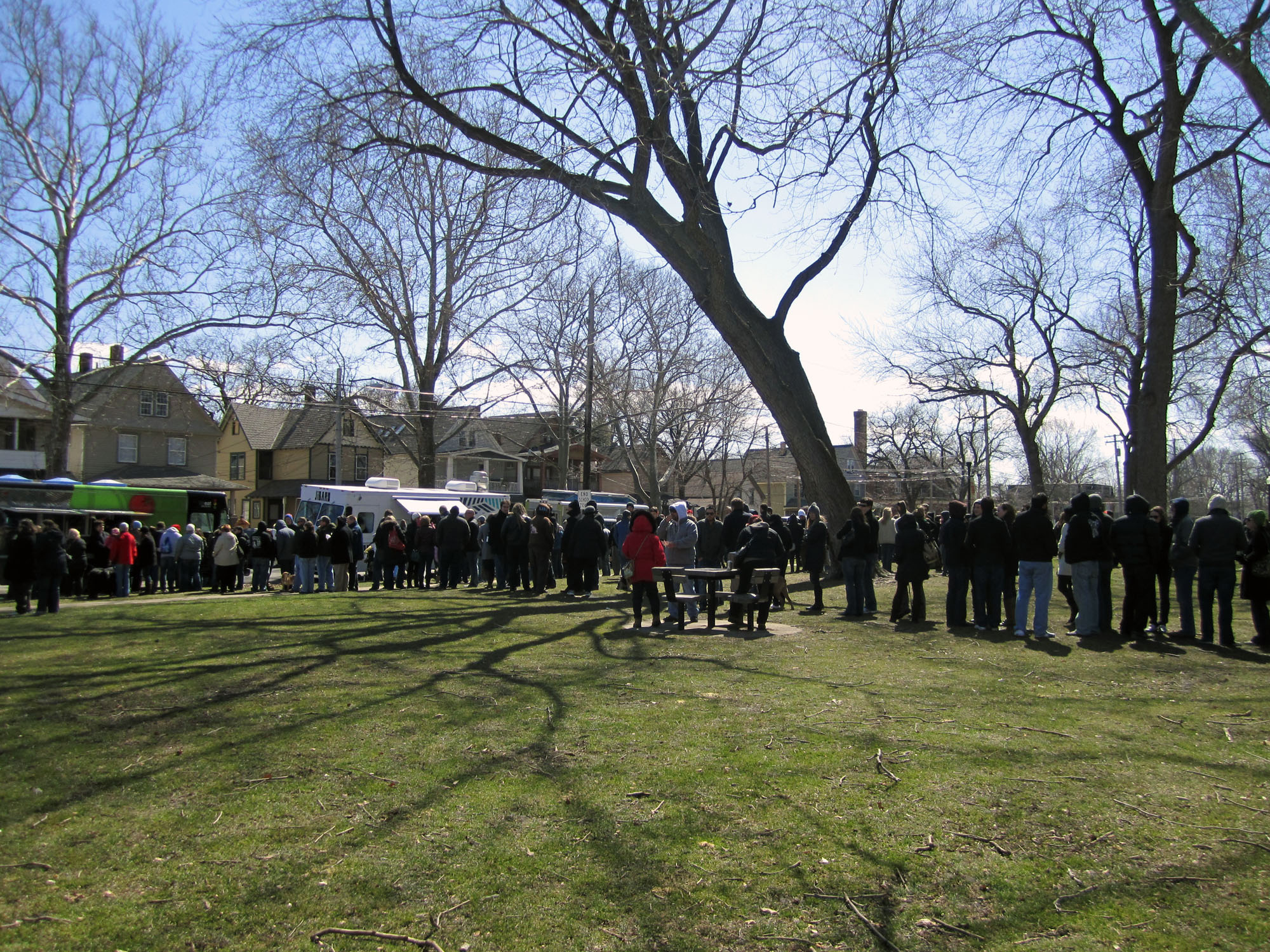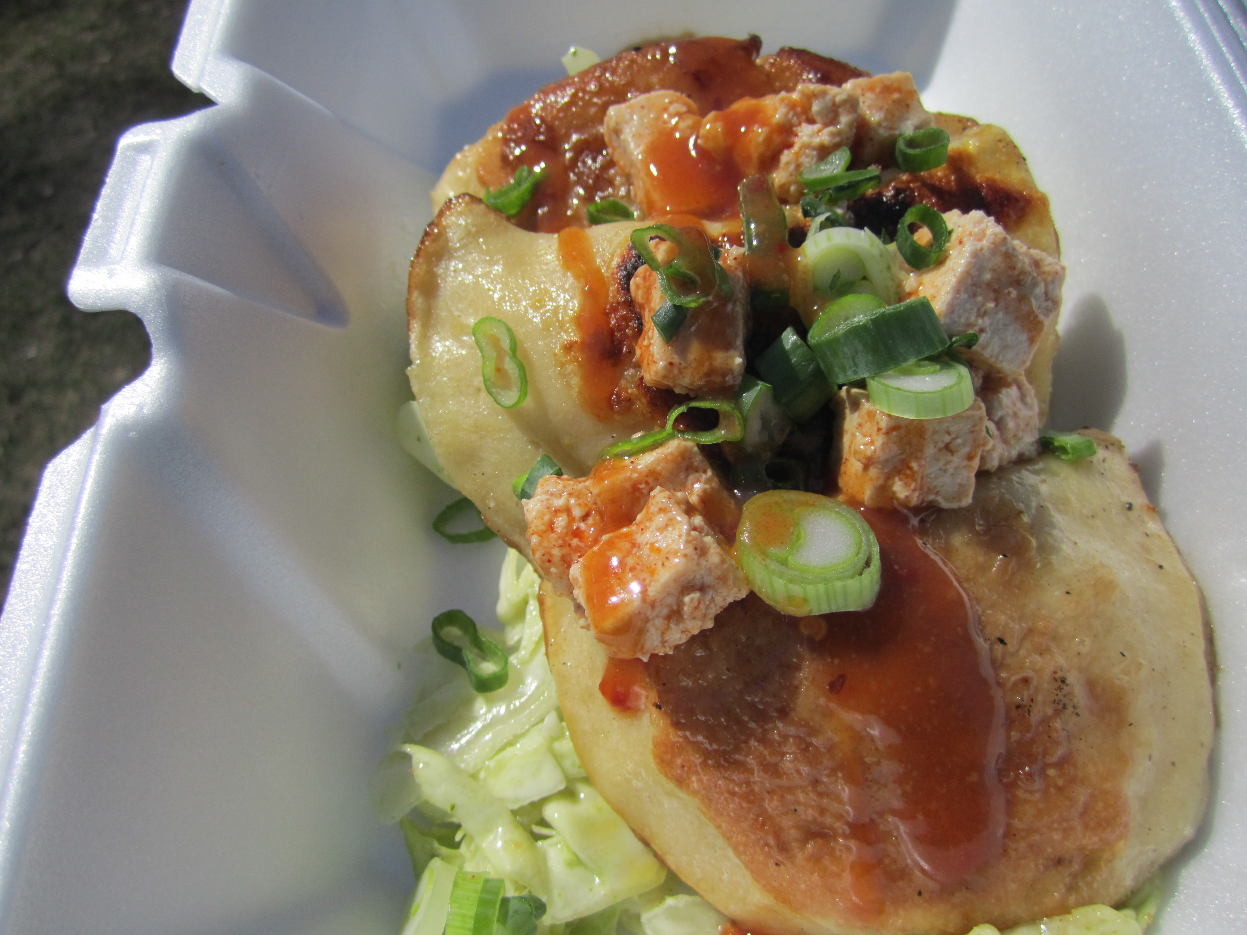 C-Town Chow Down — If there weren’t so many black pea coats, I’d think I was looking at the lines for the bathroom at Bonnaroo. I know, kind of gross. This just proves that there’s one thing we Clevelanders will line up for two hours in 30-degree weather for: delicious food. Ryan, my dad, and I braved the sunny semi-chill for Dim and Den Sum (one of several trucks parked in Tremont’s Lincoln Park) and some free orange juice and champagne. Overall, it wasn’t a bad way to spend a Sunday afternoon. Although it’ll be even more pleasant when they do it again in April, it’s 75 degrees, and I bring a set of chairs. And Dim and Den Sum is promising a 30-minute-wait-or-your-money-back guarantee at the next one, according to their Facebook page, so I’d come again. My food was an amazing pile-o-pototato-and-truffle perogie. It had Cleveland tofu and some sort of sweet delicious brown sauce on top. Click here to get Facebook updates. The next event is in April.
