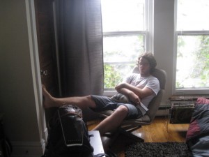 ALLEGORICAL LIFE: I just found this picture, which I took the morning after my brother Kyle took a full bag of garbage down three (or was it four?) flights of fire-escape stairs. It was late at night after we’d been out for awhile, so no one noticed that Kyle was gone for about half an hour. As it turns out, the bag of garbage ripped and he spent the majority of that time gathering week-old garbage from the fire escape at about 2 a.m. In this picture, I feel like he still looks like he’s pissed. Like my cat Tiger looked when I’d dress her up in doll clothes (give me a break; I was six). But, for you, Kyle, life is rarely a broken bag of garbage in the middle of the night. Congratulations on your new job. And I promise I won’t fall asleep outside of your house this spring.
